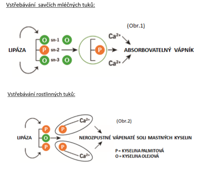 Běžné náhradní kojenecké mléko obsahuje mastné kyseliny, které se vyrábí smícháním více olejů. Takto jsou sice přidány potřebné mastné kyseliny, ale v rostlinných olejích se kyselina palmitová nachází v poloze sn-1 a sn-3. Našim výzkumem bylo zjištěno, že kyselina palmitová z rostlinných olejů může způsobovat tvorbou nerozpustných vápenatých solí mastných kyselin, které jsou příčinou zácpy a jiných zažívacích potíží.