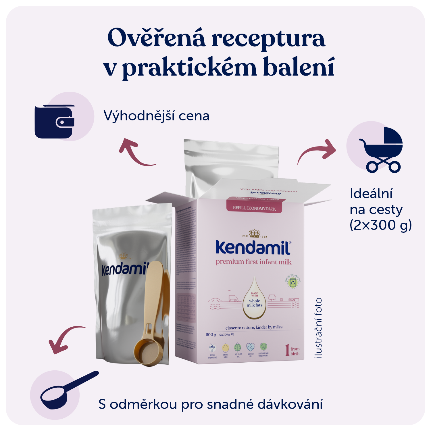 Více než 60 let výzkumu a vývoje v každé kapce. Kojenecká mléčná výživa Kendamil Premium, inspirovaná přírodou a složením mateřského mléka, je vyrobena z kvalitního plnotučného kravského mléka s přirozeným obsahem mléčného tuku. Určeno pro kojence od narození do ukončeného 6. měsíce, pokud nemohou být kojeni. Certifikováno pro vegetariány.