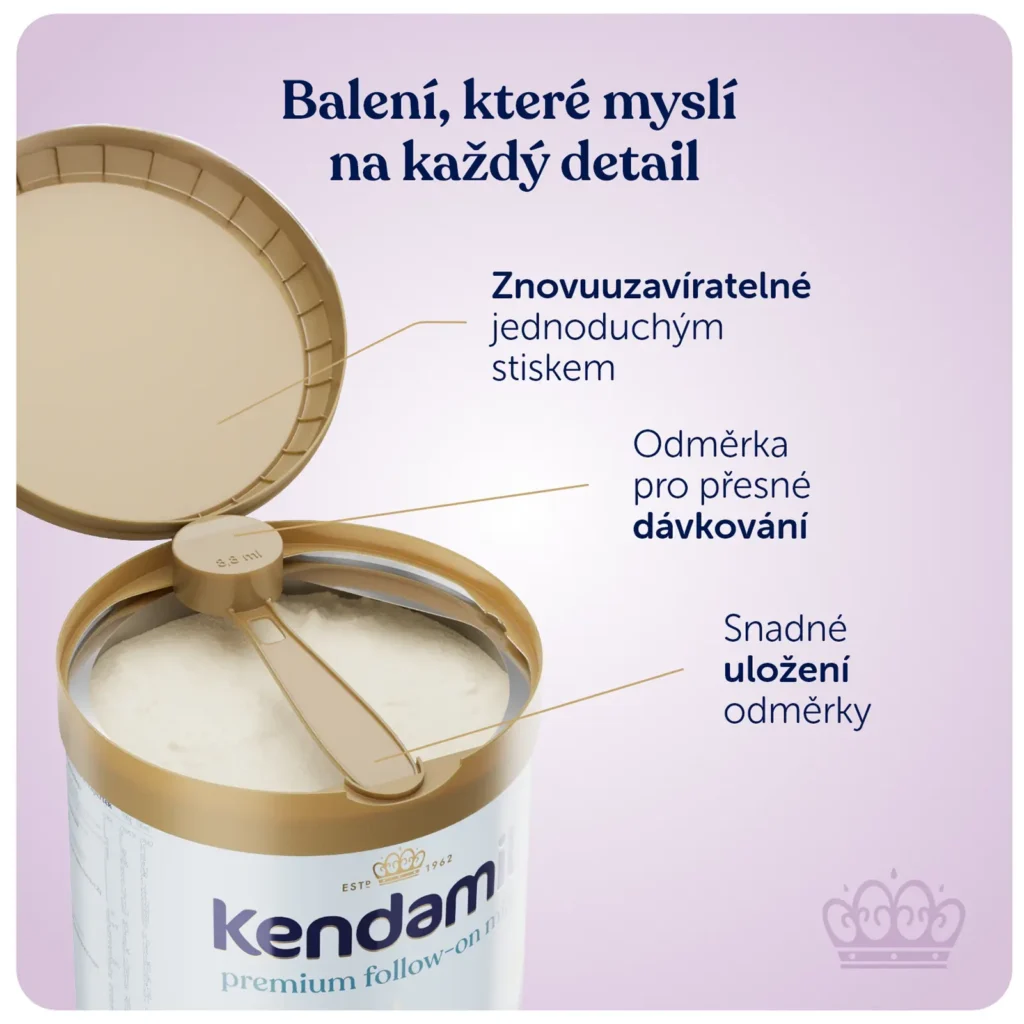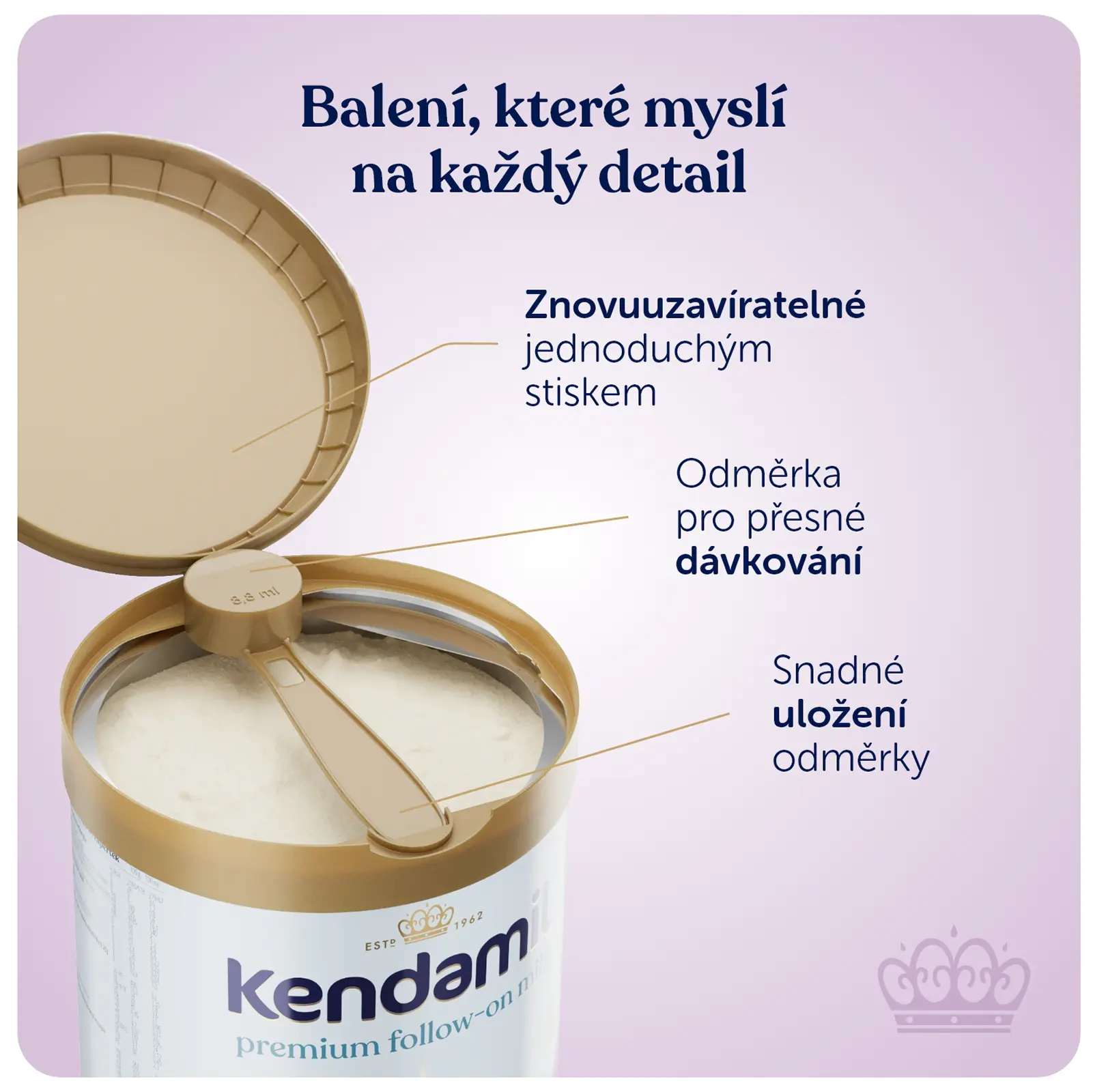Více než 60 let výzkumu a vývoje v každé kapce. Kendamil Premium je prémiová pokračovací kojenecká výživa z plnotučného mléka, které je přirozeným zdrojem mléčného tuku. Obsahuje pečlivě vybrané složky, včetně HMO+ a oligosacharidů GOS a FOS. Receptura je inspirována složením mateřského mléka a neobsahuje palmový ani rybí olej. Certifikováno pro vegetariány.